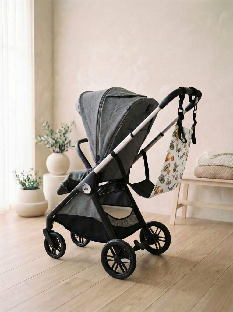 - Mosquetones y cintas regulables: permiten ajustar la hamaca a diferentes modelos de carrito con cuatro broches de regulación.
